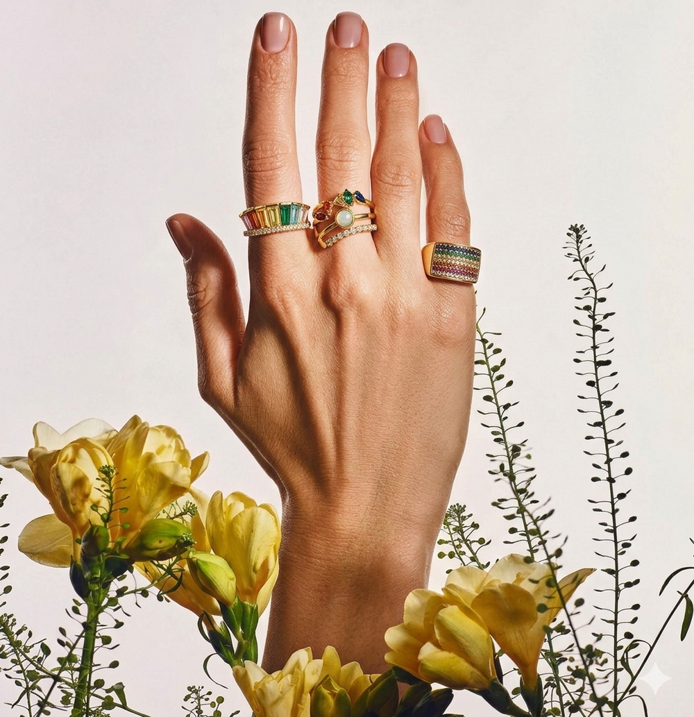 This season is all about fresh layers. Think glowing gold, colourful stones, and stacks that feel effortlessly cool.